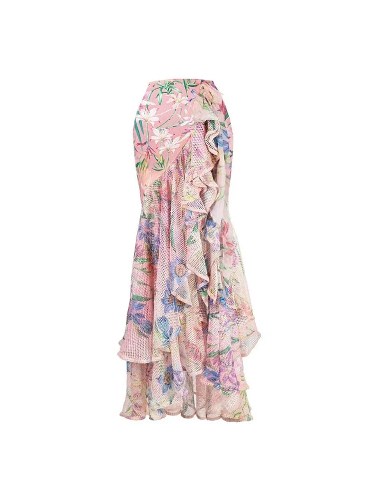 Elevate your beachwear with this long sleeve one-piece swimsuit featuring bold prints and sheer mesh patchwork. A perfect blend of coverage and allure, this piece brings a high-fashion edge to seaside styling.