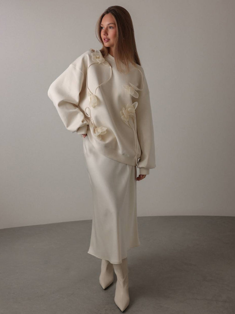 This artistically designed sweatshirt features delicate 3D floral embellishments and a relaxed fit for ultimate comfort. The unique Instagram-worthy design stands out with its handmade details, making it perfect for casual outings, gatherings, or creating stylish content. Crafted from premium cotton blend fabric, it offers both warmth and style for the cooler seasons.