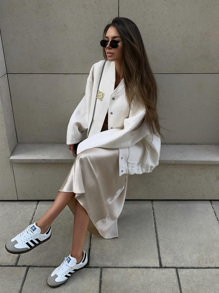 This 2024 new arrival baseball jersey combines retro athletic style with modern streetwear aesthetics. Crafted from premium pique cotton fabric, it features a relaxed cropped cut with ribbed collar and cuffs for authentic sporty vibes. The 3D foam letter embroidery on back adds urban edge while side slit details ensure ease of movement. Perfect for creating Y2K looks with cargo pants or sweet-layered styles with lace camis.
