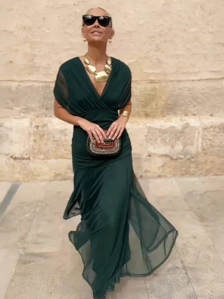 • Movement Made Graceful: Fluid drop-shoulder sleeves and ankle-skimming skirt float with every step