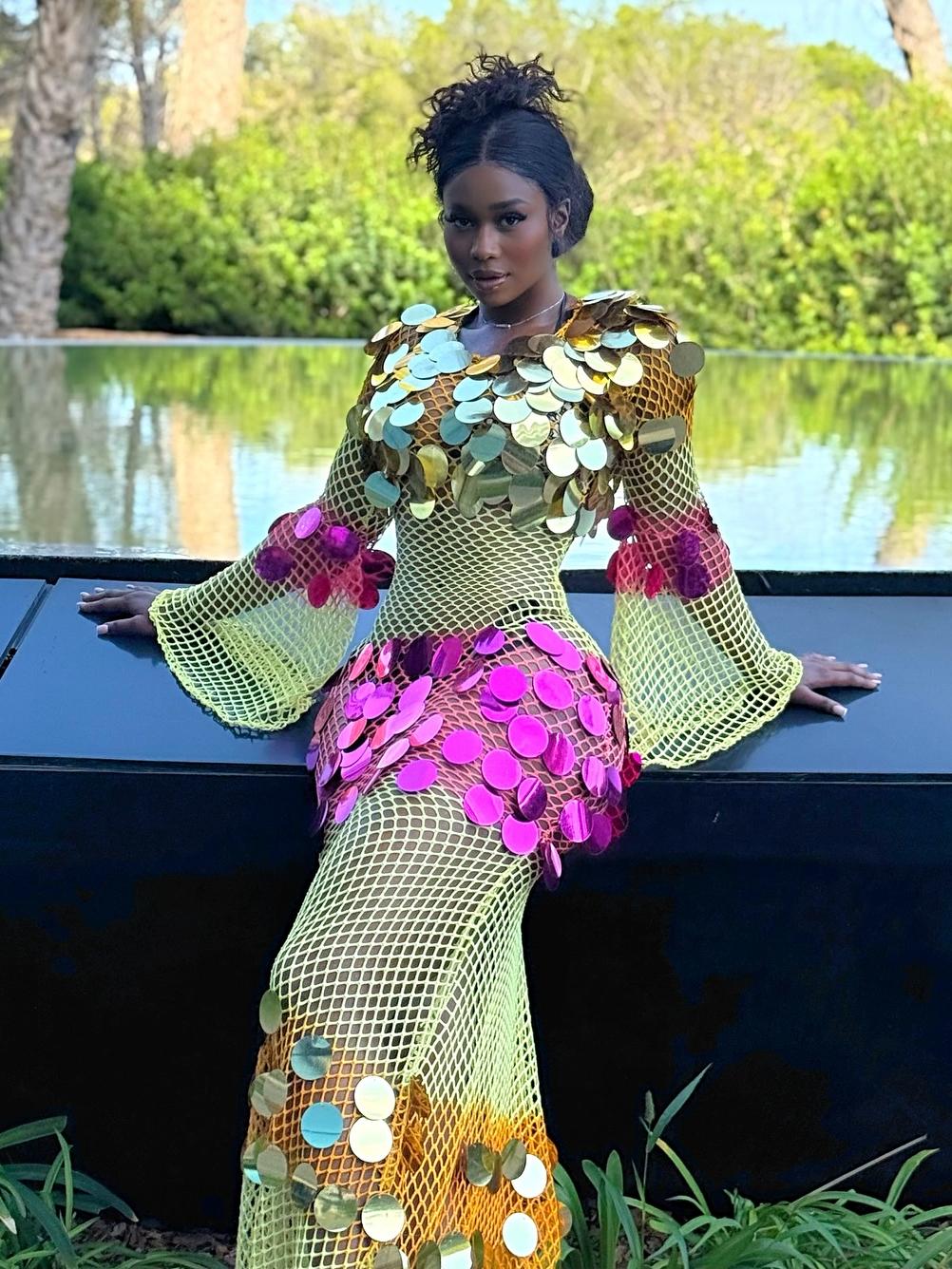 Turn heads with this yellow mesh maxi dress, dazzling with shimmering sequins and a bold, elegant silhouette.