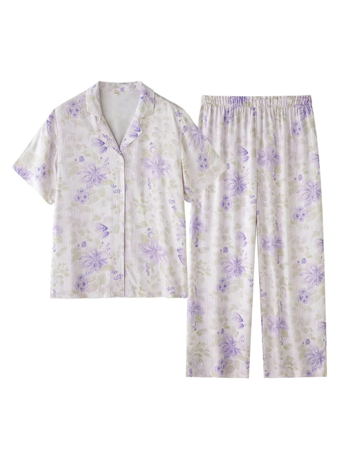 "Crafted from premium satin, this pajama set features a beautiful floral print that adds a touch of luxury to your nighttime routine."