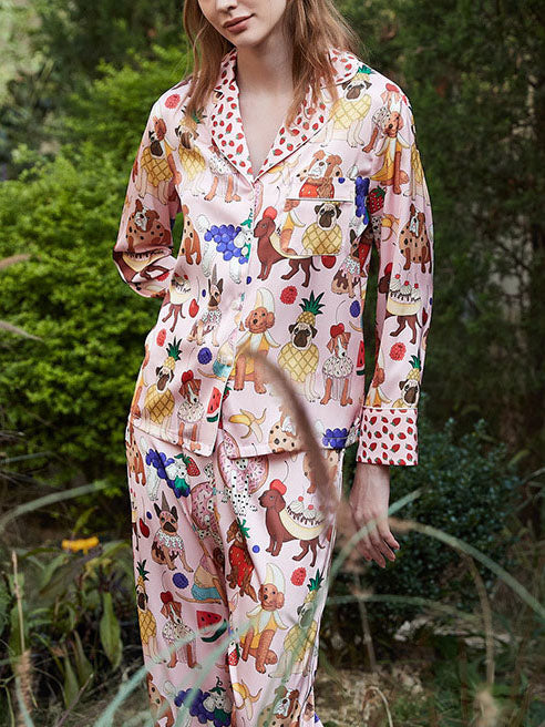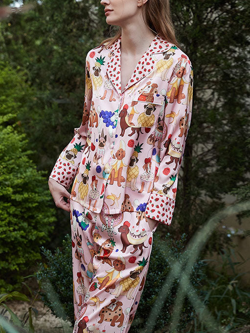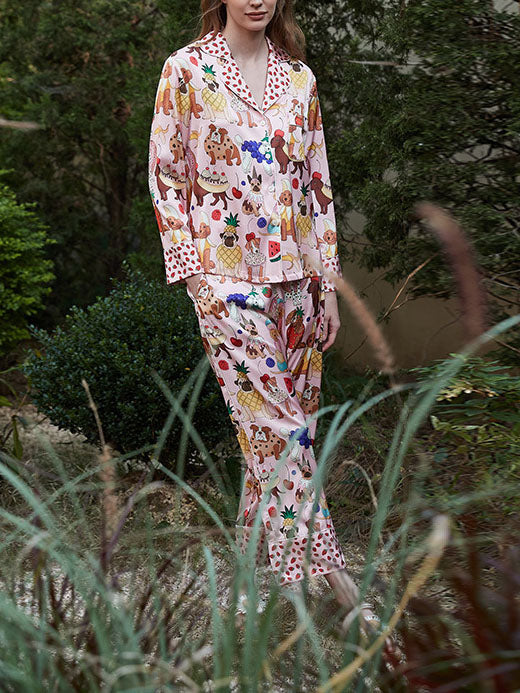 Sweeten your dreams with the Pink Dessert Dog Pajama Set, a fun and cozy treat for both dog lovers and dessert enthusiasts! Featuring an adorable print of playful pups surrounded by delicious desserts, this set adds a whimsical touch to your loungewear collection. Made from soft, breathable fabric, it’s designed for ultimate comfort, perfect for those lazy mornings or cozy evenings at home.