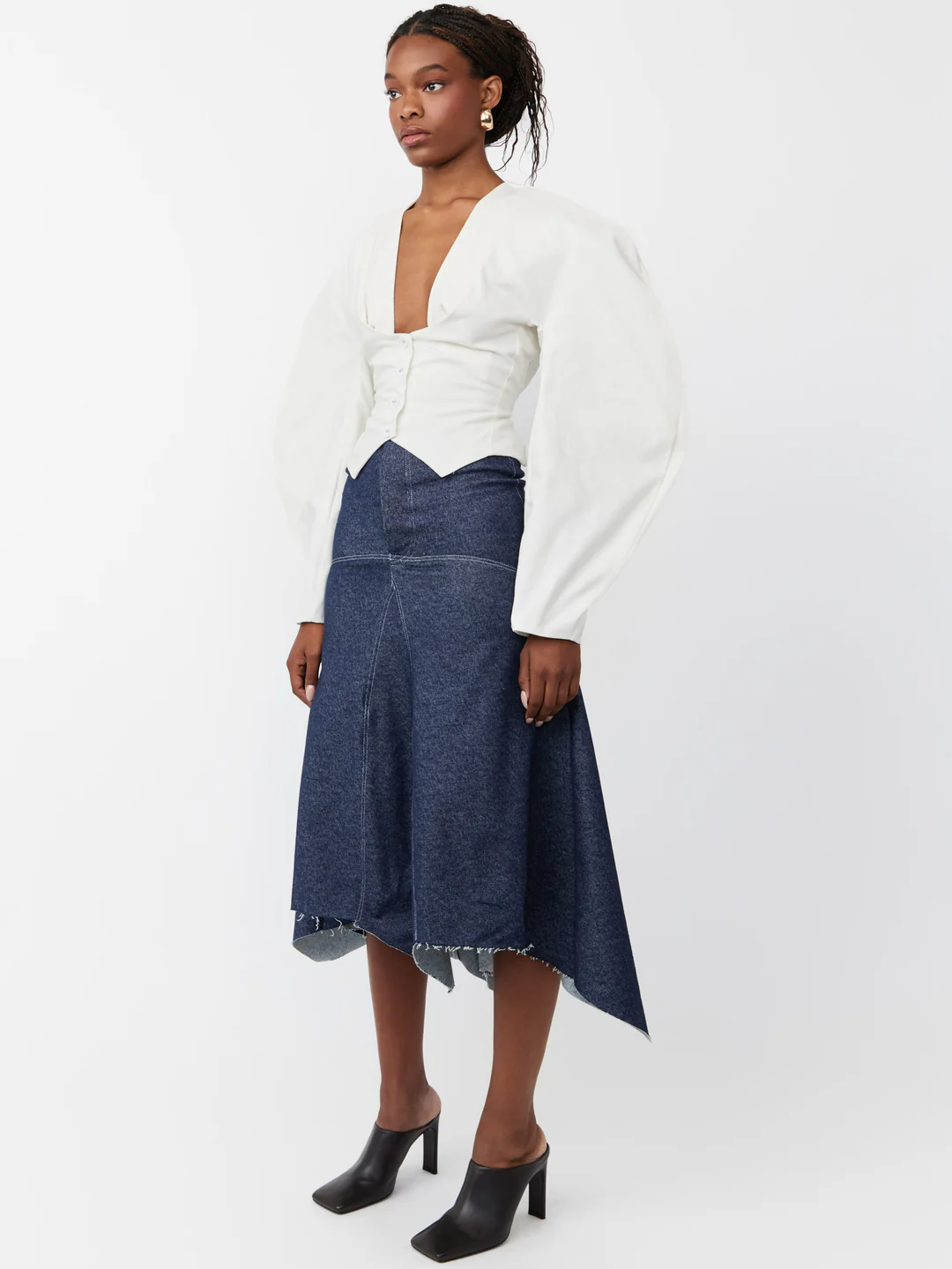 Curved Balloon Sleeves Blouse