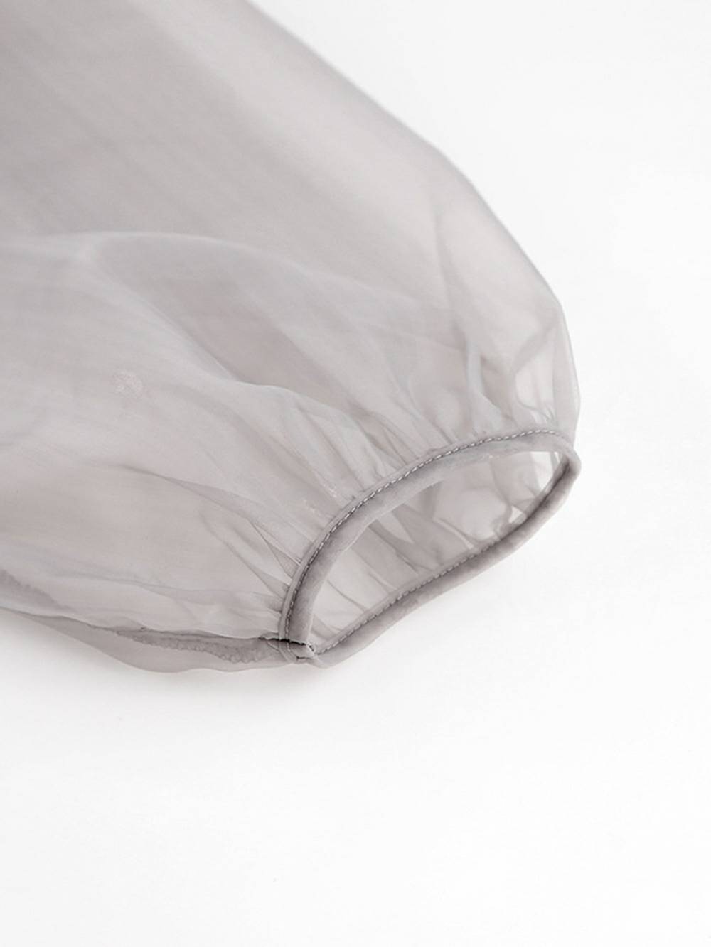 Sheer Sexy Top V Neck Long Puff Sleeves Bow Tie Chic Blouse