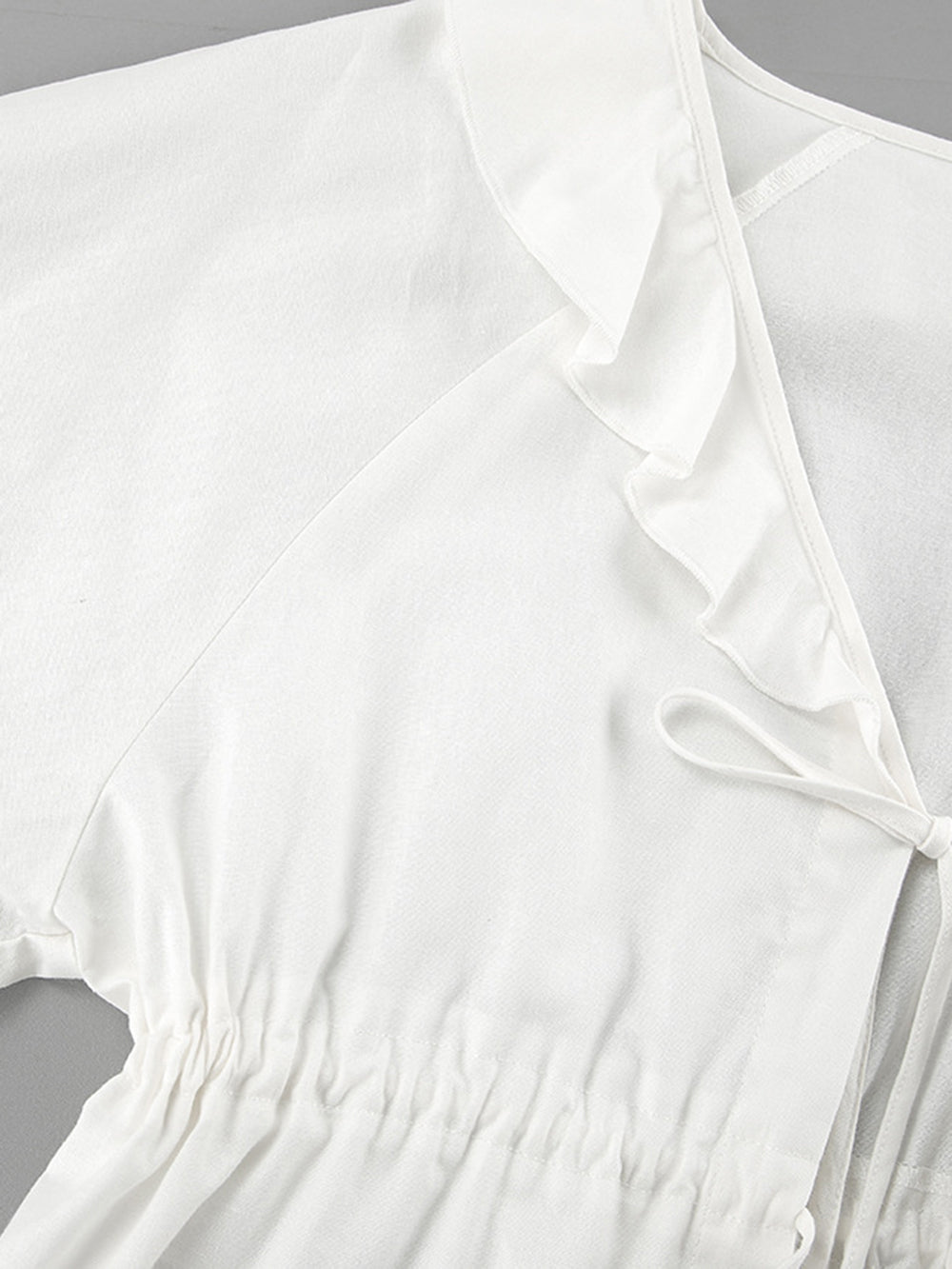 This White, Tie-Front, Puff Sleeved, Romper Dress Will Give You That Girly Look But Allow You To Feel Secure All Day With The Shorts Lining!
