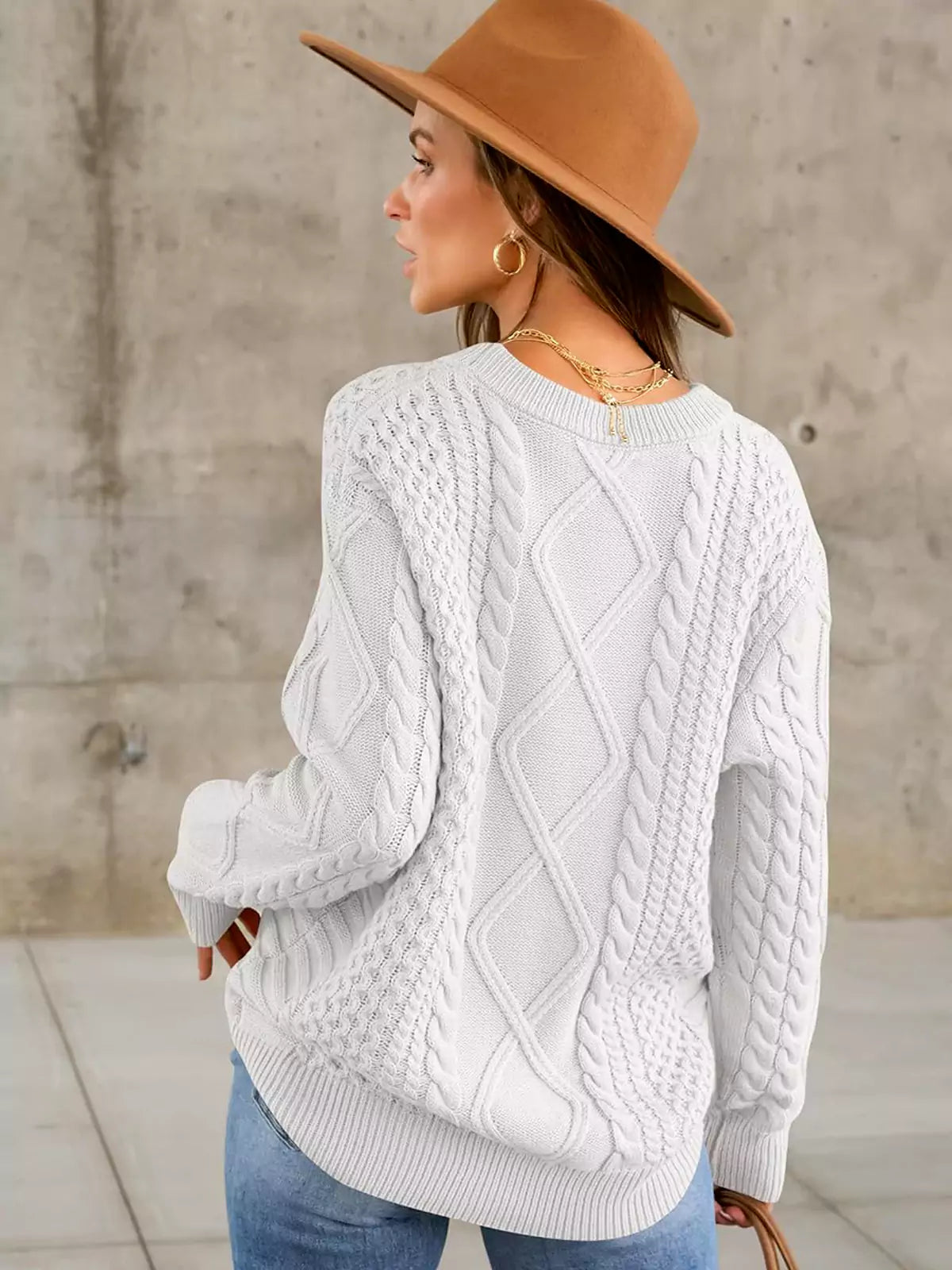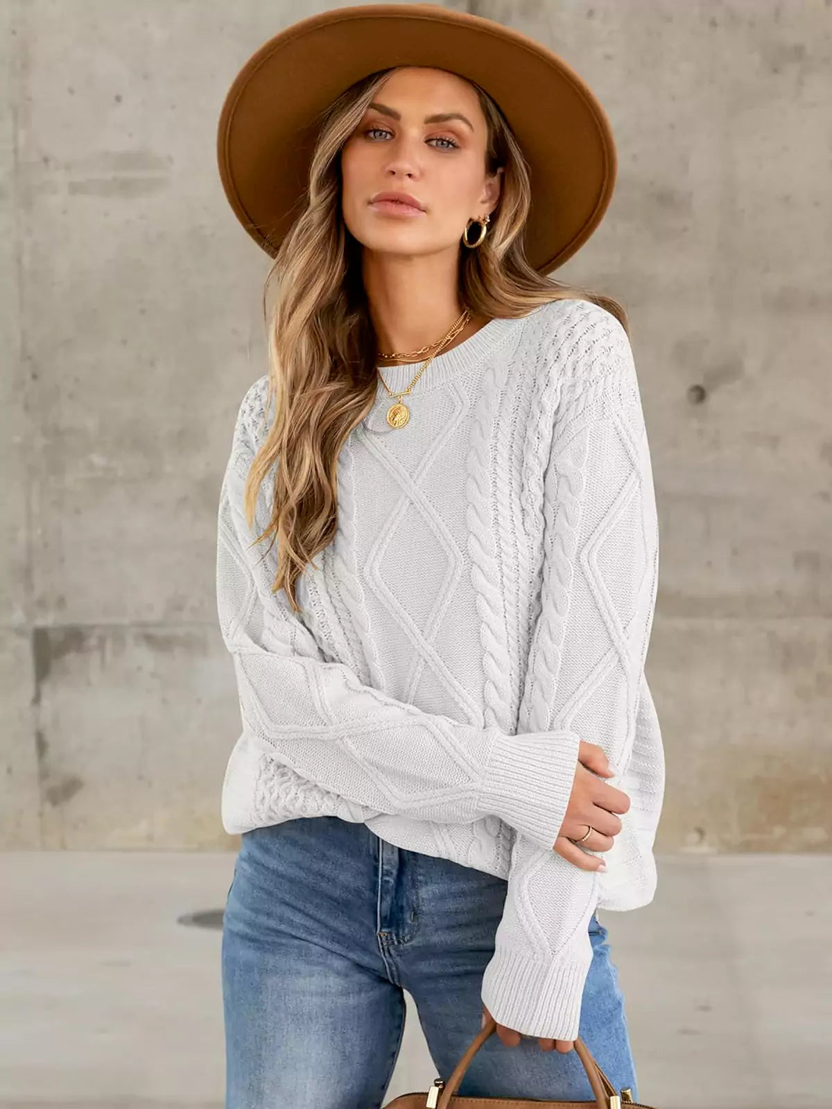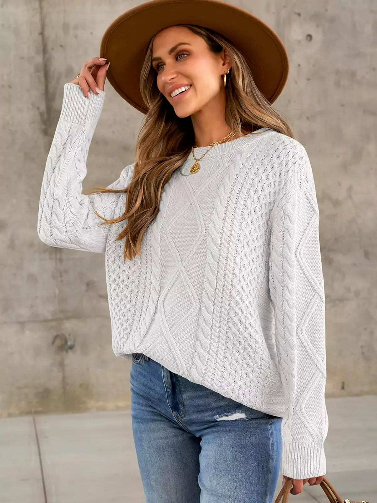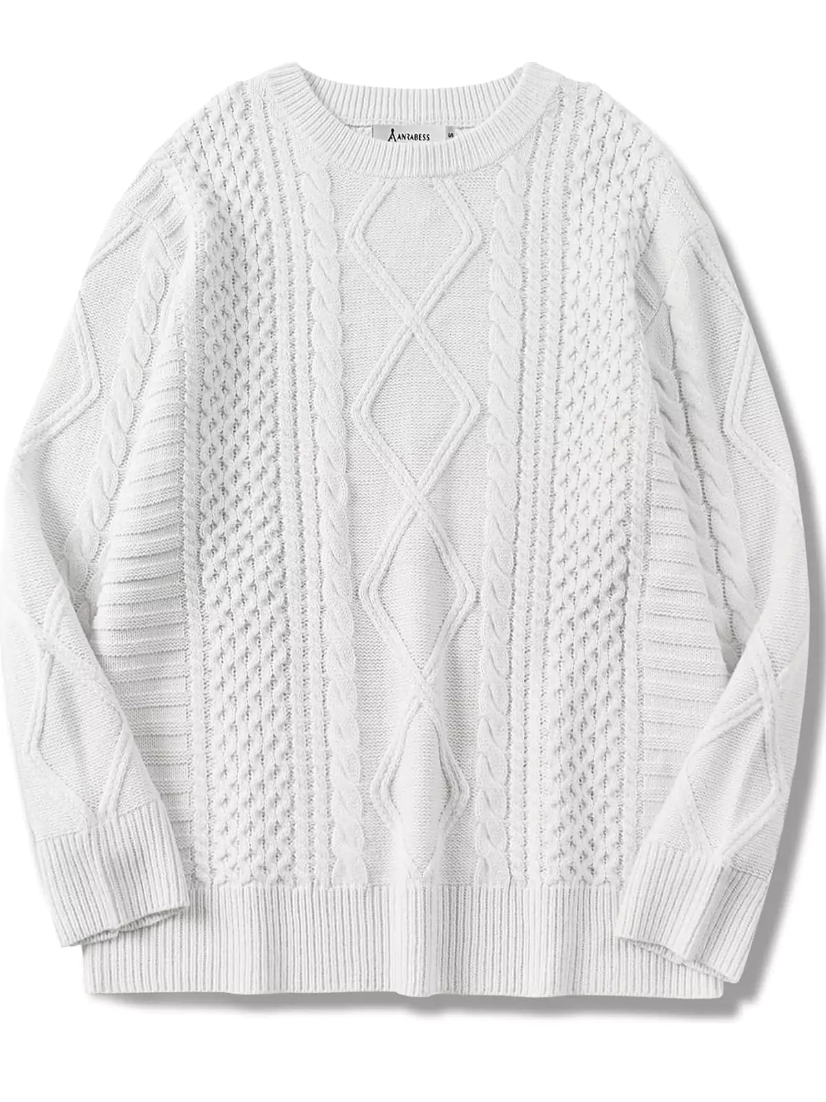 · Classic crewneck with long sleeves and a timeless cable knit design.