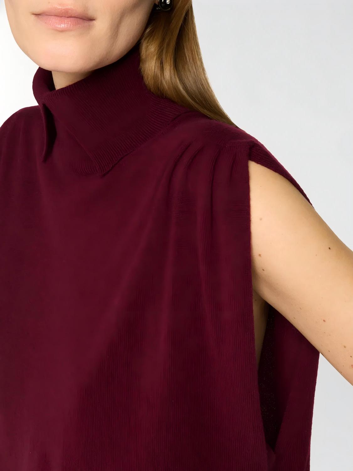 Elevate your wardrobe with this statement-making ensemble that balances sophistication with fluid elegance. The knit top features an open-front turtleneck and subtle gathers at the shoulders, adding both volume and delicacy. Designed with a fluid fit and hip-length cut, it’s versatile enough to be worn on its own or layered under a blazer for a refined touch.