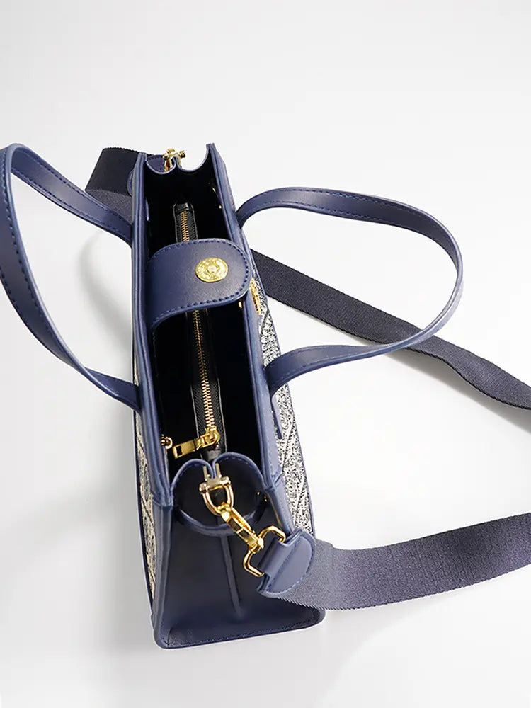 This jacquard rhinestone tote crossbody bag fuses timeless elegance with dazzling modern style. Crafted with luxurious jacquard fabric and fully embellished with sparkling rhinestones, it shines effortlessly from day to night. The structured tote silhouette offers top-handle and crossbody versatility, while the all-over crystal detailing adds high-glam impact. A lightweight yet opulent accessory perfect for elevating any look with refined brilliance.